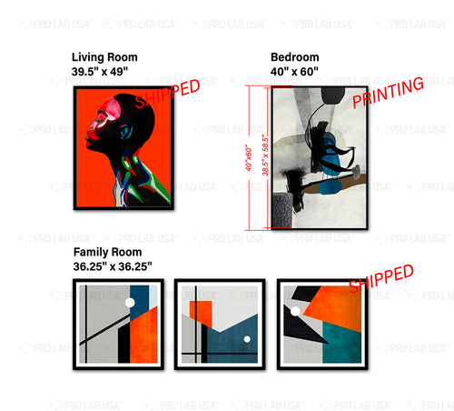 Custom for Jerelle, 1 Matte Paper Prints w/Canvas Stretching & 4 Canvas Stretching, 40"x60", 40"x50", 36"x36"Custom for Jerelle, 1 Matte Paper Prints w/Canvas Stretching & 4 Canvas Stretching, 40"x60", 40"x50", 36"x36"