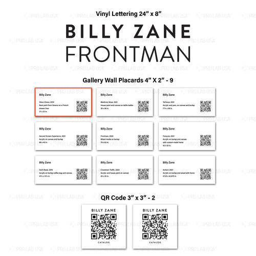 Custom for Margot, 1 Lettering, 2 QR Codes, 9 Labels, 24" x 8", 3" x 3"-Billy ZaneCustom for Margot, 1 Lettering, 2 QR Codes, 9 Labels, 24" x 8", 3" x 3"-Billy Zane